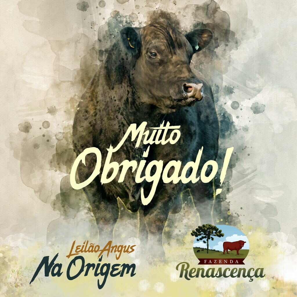Matéria da ASSOCIAÇÃO BRASILEIRA DE ANGUS sobre o Leilão Angus na Origem da Fazenda RENASCENÇA: “A 13ª edição do Leilão Angus na Origem faturou R$ 728.780,00 com liquidez total de 32 touros Angus, três machos Ultrablack e um reprodutor Brangus neste sábado (7/8). O remate virtual teve média de R$ 19.990,00 para reprodutores Angus e