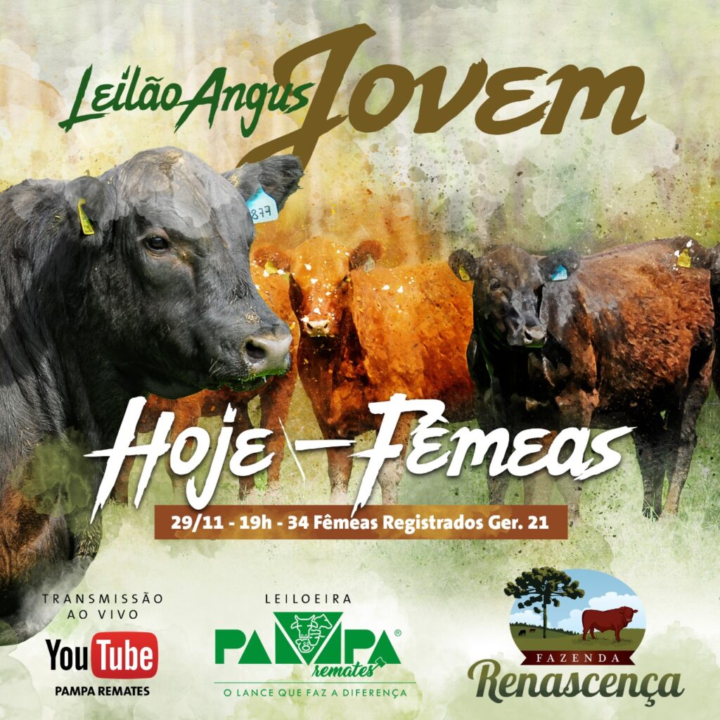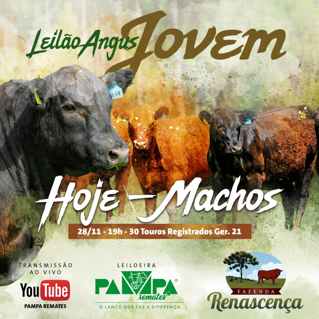 Leilão Virtual ANGUS JOVEM da Fazenda Renascença link do leilão https://youtu.be/nbms6lj0yHs TRANSMISSÃO PELO SITE DA PAMPA REMATES