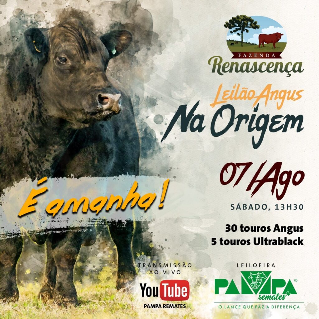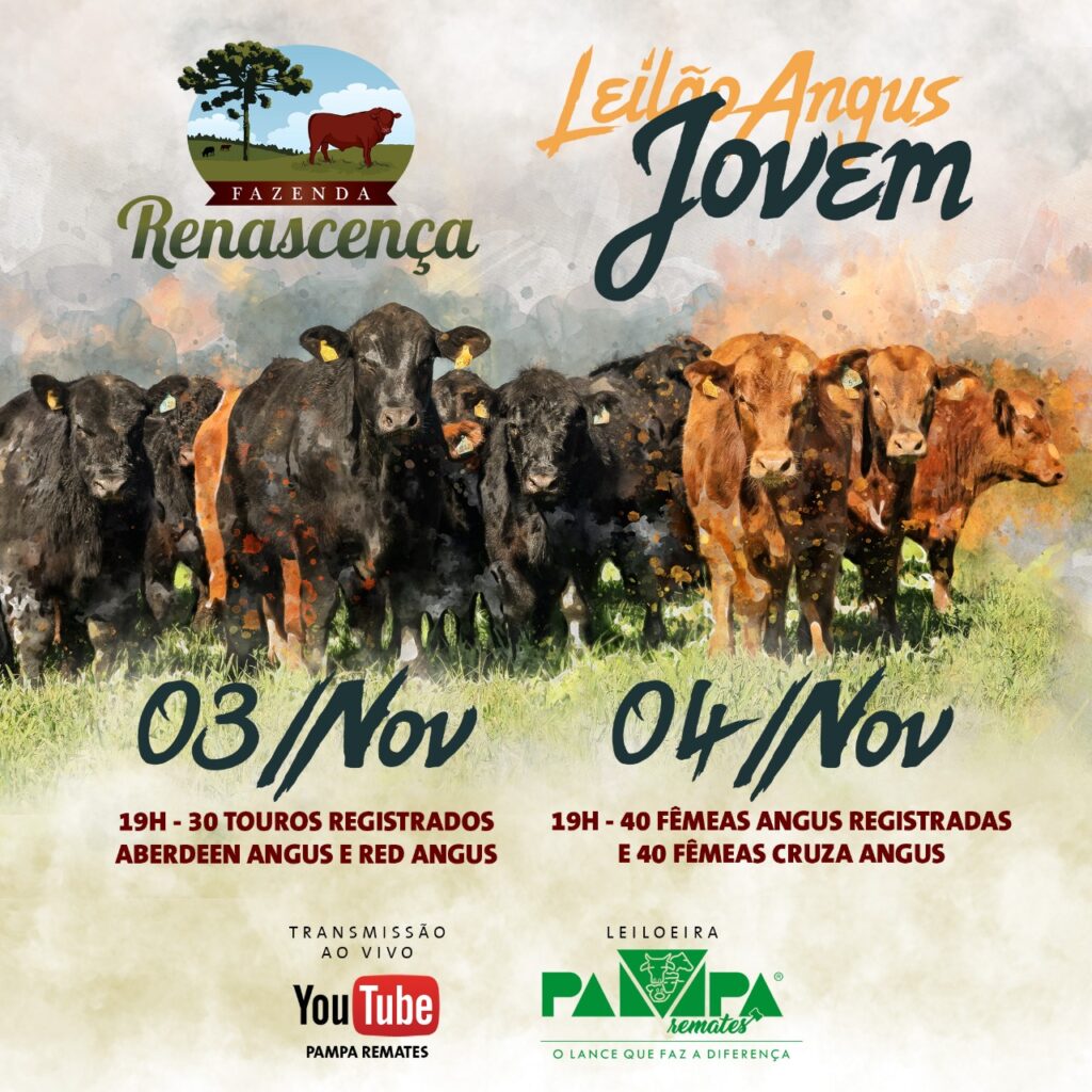 É Quarta-Feira !!!🐂🐃 Dia 03/11 às 19:00 horas o Leilão Virtual Angus Jovens da Fazenda Renascença Etapa dos Reprodutores. 👉Transmissão ao vivo pelo Canal Pampa no YouTube: 👉Acompanhe pelo site Pampa Remates:👇👇👇https://bit.ly/3Cf7NAT Contamos com sua participação e audiência!!!😉 Lance através desses telefones de WhatsApp:Ingrid: (046) 9 99230302;Luiz Roberto: (046) 9 98047425;Candido: (046) 9 99760085;Ivonei: (046)